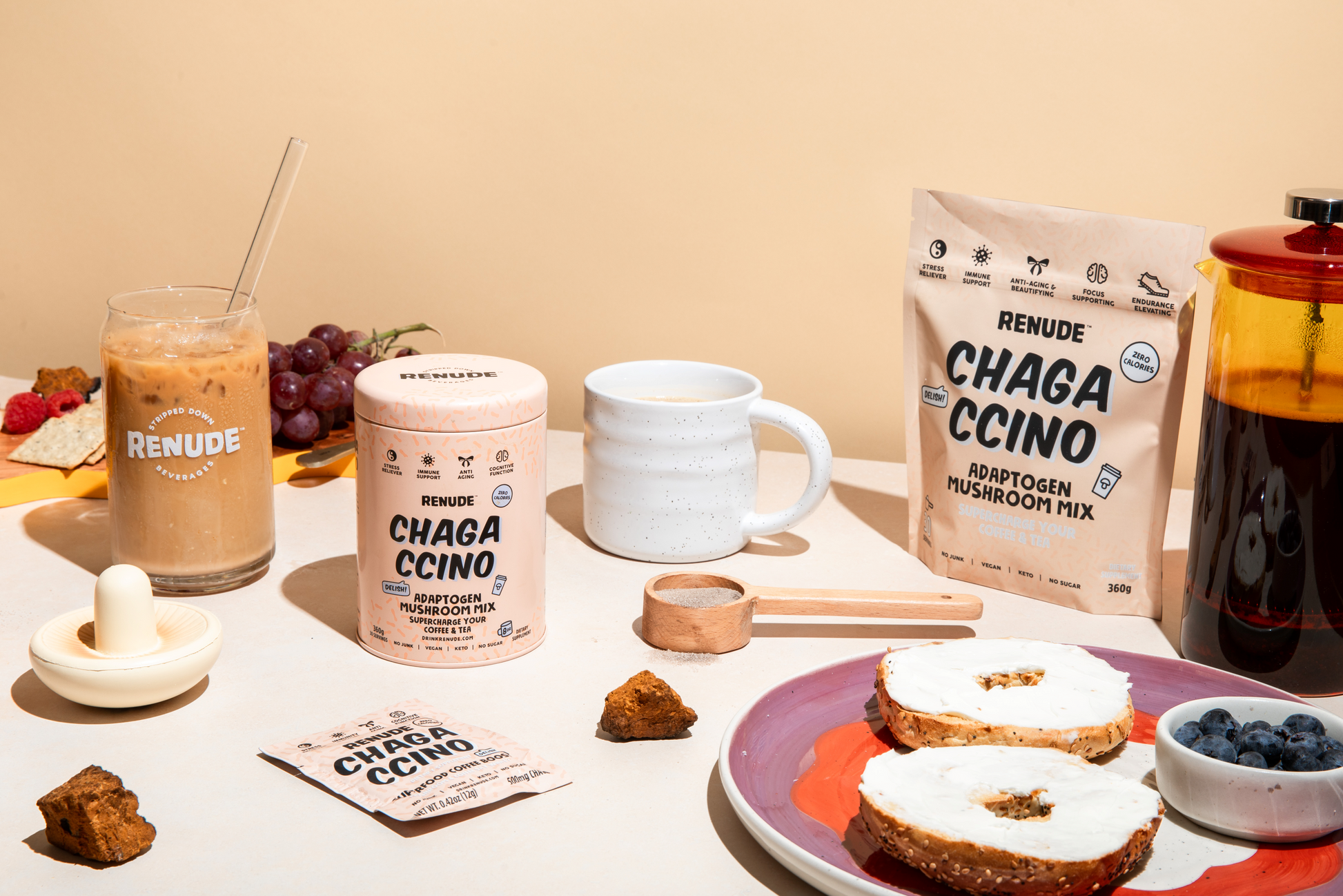 "Chagaccino is a clean, organic, plant-based, zero sugar, keto, and low calorie treat, spiked with an effective dose of the planet's greatest adaptogen." - Renude